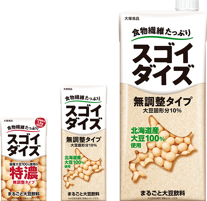 - ※濃度の高い大豆飲料です。他の大豆食品でアレルギー症状が出ない方でも、まれに発症例がありますので、初めての飲用の場合は少量からの試飲をおすすめします。